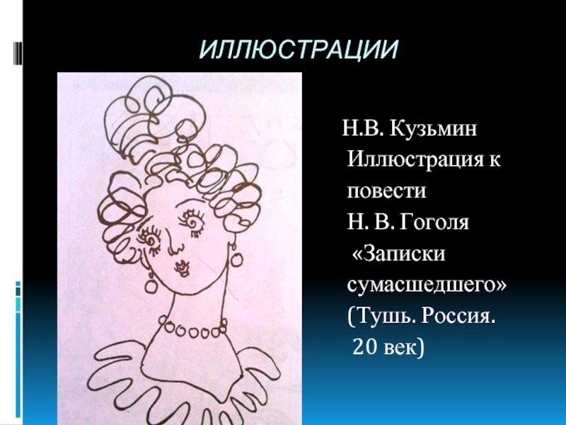 Иллюстрация к повести Гоголя "Записки сумасшедшего" представляет собой визуальное представление основной темы произведения - психологического состояния главного героя. На иллюстрации можно увидеть изображение мужчины, который выглядит напряженным и испуганным. Его глаза полны страха и безумия, а на его лице отражены переживания и мучительные мысли. Фон иллюстрации может быть выполнен в темных тонах, чтобы передать атмосферу тревоги и неопределенности, присущей герою. Эта иллюстрация поможет читателю лучше понять эмоциональное состояние главного героя и вовлечется в атмосферу повести Гоголя.