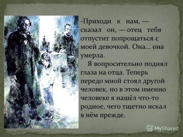 Передо мной открывается великолепная иллюстрация художника, принадлежащая к повести. Каждая деталь на ней передает особое настроение и подводит зрителя к событиям, описанным в книге. Владимирский художник талантливо передает атмосферу произведения, позволяя нам окунуться в его мир и полностью погрузиться в историю. Через его работы можно легко понять главные моменты повествования и увидеть героев во всей их красе. Очаровательная иллюстрация становится неотъемлемой частью повести, добавляя еще больше глубины и эмоций к произведению.
