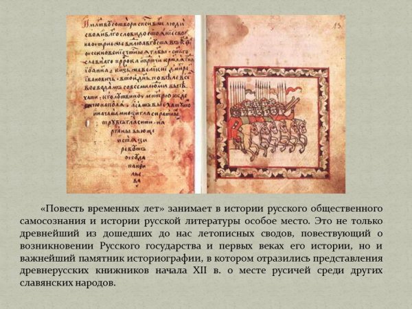 Повесть временных лет – это одно из самых древних письменных источников, содержащих информацию о прошлом славянской культуры. Она является хроникой, состоящей из различных событий, произошедших в Киевской Руси с IX по XII век. Повесть временных лет описывает исторические события, такие как княжеские войны, политические договоры и религиозные события, а также повествует о роли князей, богатырей и других исторических фигур. Иллюстрации, которые сопровождают эту повесть, являются уникальными и действительно древними. Они помогают наглядно представить события и персонажей, создавая впечатляющую визуальную атмосферу прошлого. Иллюстрации древних времен придают особый шарм этой повести и позволяют читателям окунуться в атмосферу далекого прошлого.