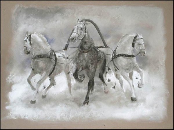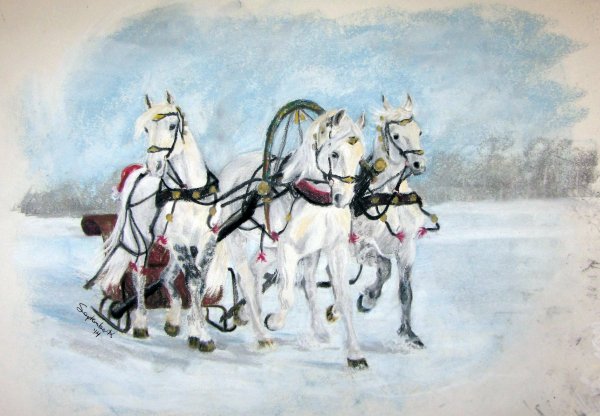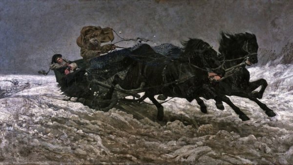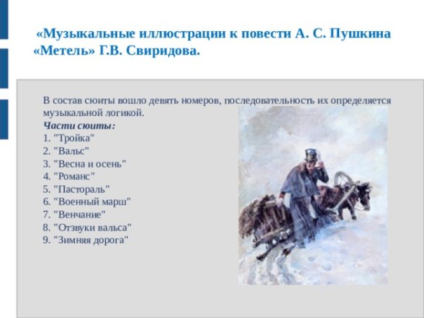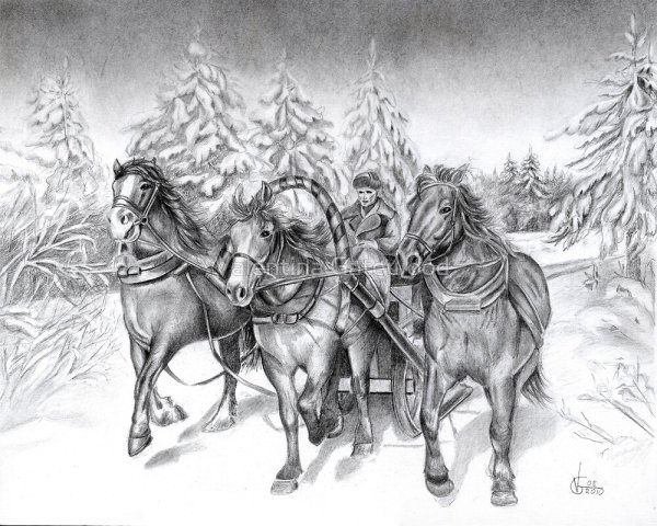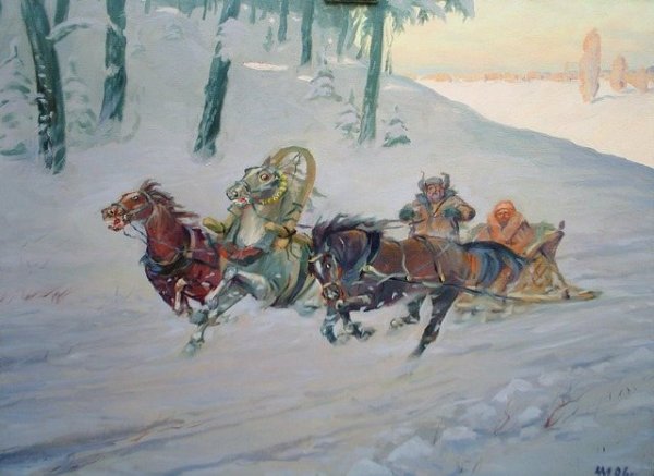 Иллюстрация к повести Пушкина "Метель" представляет собой живописное изображение зимнего пейзажа, где главным элементом становится тройка. На фоне белоснежных полей и просторов лежит мощный вьюга, которая добавляет образу динамизма и напряжения. Тройка, запряженная тремя лошадьми, впереди которых стоит ямщик, выделяется яркими красками и акцентирует внимание на себе. Вся композиция передает ощущение скорости и движения, а также завораживает своей красотой и символическим значением - идущий через снегопад экипаж символизирует силу и стремление преодолевать трудности. Эта иллюстрация прекрасно вписывается в атмосферу произведения, помогая читателю еще глубже погрузиться в сказочный мир русской зимы и передвигаться вместе с героями по их непростому пути.