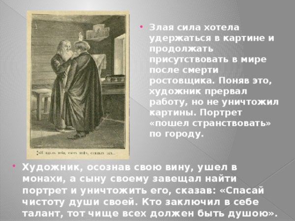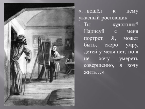 Великий русский писатель Николай Гоголь написал знаменитую повесть "Портрет" в 1835 году. Эта история о странном и загадочном портрете молодого аристократа, который кажется обладать мистической силой и способностью меняться на глазах. Главный герой, молодой художник Портретов, решает написать этот портрет и становится свидетелем ужасных событий, которые разворачиваются перед его глазами. Гоголь виртуозно изображает темные и мрачные страницы человеческой души, а иллюстрации в повести помогают нам визуализировать эти образы. Каждая иллюстрация передает атмосферу загадочности и тревожности, которые пронизывают всю повесть и заставляют читателя задуматься над смыслом происходящего. "Портрет" - это не только великолепное литературное произведение, но и искусство, которое способно захватить нас своей мощной силой и вызвать самые разные эмоции.