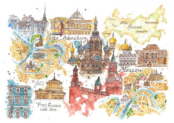 Иллюстрация "Россия" - это визуальное изображение, которое передает основные черты и характеристики этой уникальной страны. Она может быть представлена в различных форматах и стилях, от классического реализма до современного абстракционизма, но всегда отражает богатство и разнообразие российской культуры, природных ландшафтов, исторических памятников и национальных символов. Иллюстрация "Россия" может включать в себя изображение Красной площади, московских куполовых церквей, символа Матрешки, самовара, Спасской башни Кремля и других значимых объектов, которые являются неотъемлемой частью российской культуры и идентичности. Такая иллюстрация может использоваться для создания постеров, открыток, рекламных материалов или просто для декорирования интерьера, чтобы подчеркнуть связь с Россией и ее уникальностью. Все эти элементы собраны вместе, чтобы передать неповторимый дух и красоту этой великой страны, вызывая гордость и восхищение у тех, кто ее видит.