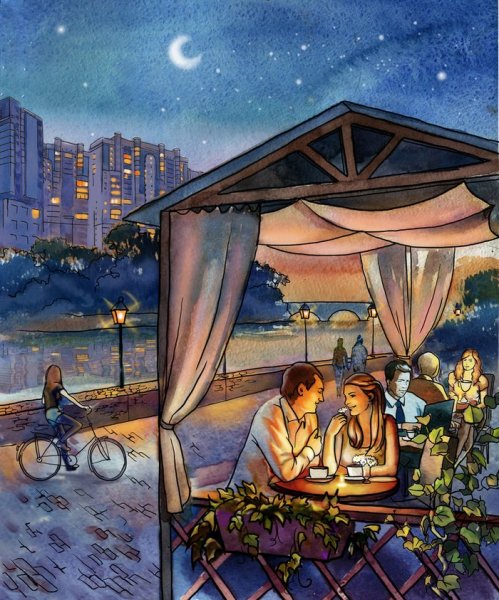 Вечер - это магическое время суток, когда солнце уже скрылось за горизонтом, а небо окутано разноцветными оттенками. Вечерняя иллюстрация привносит в нашу жизнь чарующую атмосферу спокойствия и романтики. Она может изображать тихий закат над морем, где полированная вода отражает последние лучи солнца, создавая неповторимые игры света и тени. Или же это может быть городской пейзаж, где освещенные фонарики пробуждают уютную атмосферу и придают почти волшебный вид городским улицам. Независимо от выбранного сюжета, вечерняя иллюстрация позволяет передать эмоции и перенести нас в другой мир, где время замедляется и можно насладиться моментом.