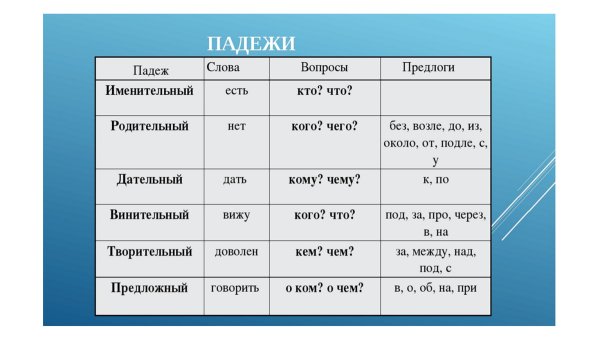 Иллюстрация по падежам является наглядным и понятным способом визуализации грамматических правил русского языка. Она позволяет учащимся легко запомнить и отличать разные формы слов в различных падежах, таких как именительный, родительный, дательный, винительный, творительный и предложный. Иллюстрации могут быть представлены в виде таблиц, схем или картинок, которые показывают изменение слова в зависимости от его функции в предложении. Такой подход помогает студентам более эффективно осваивать правила падежей и использовать их правильно при написании и разговорной речи.