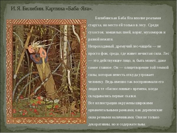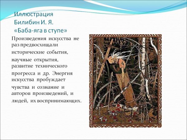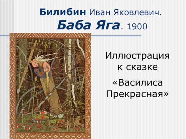 Искусство иллюстрации Бабы Яги, созданные Иваном Билибиным, являются настоящим шедевром. Передача духа русской народной сказки, магии и таинственности этого персонажа в его работах просто потрясающая. Каждая иллюстрация Билибина оживляет мир Бабы Яги, позволяя нам окунуться в ее необычный и загадочный мир. Его уникальный стиль, сочетающий детализацию и символизм, придает иллюстрациям особую глубину и эмоциональность. Смотря на работы Билибина, можно почувствовать все тайны и опасности, которые скрыты за фигурой старушки-ведьмы. Иллюстрации Бабы Яги Билибина открывают для нас новый мир, богатый фольклорными мотивами и великолепной художественной реализацией.