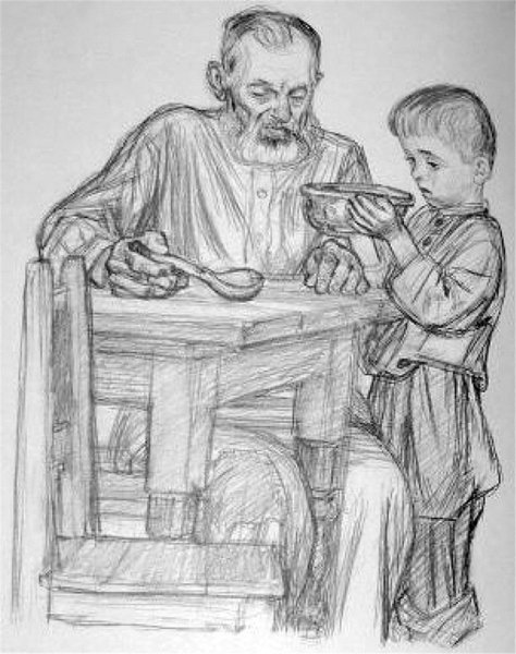 На этой замечательной иллюстрации изображены старый дедушка и его внучек. Они сидят рядом друг с другом на скамейке, улыбаются и наслаждаются прекрасным днем. Дедушка выглядит мудрым и опытным, а внучек полон энергии и радости. Взаимная любовь и уважение между ними явно видны на этой картине. Это изображение наполняет сердце теплотой и вызывает чувство ностальгии, принося нам память о ценности семейных связей и бесценном опыте, который передается от старшего поколения к младшему.