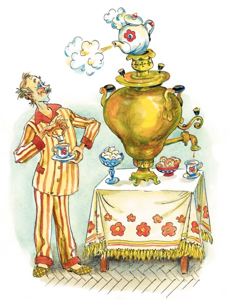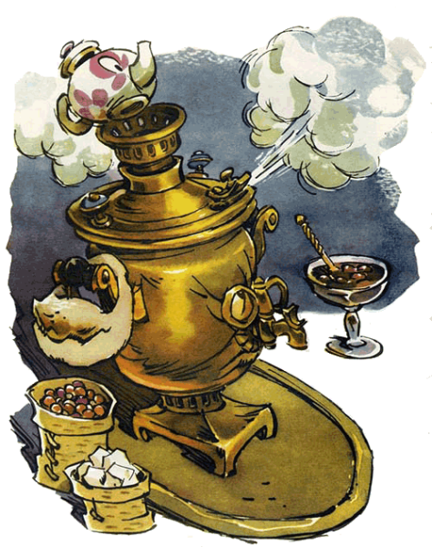 Иллюстрация "Самовар" - это визуальное изображение этого уникального предмета, который является символом русской культуры и традиций. Самовар - это металлический чайник, имеющий особую форму и узоры на поверхности, который используется для заваривания чая. Иллюстрация передает всю его красоту и изящество, а также теплоту и уют, которые он приносит в дом. Она позволяет полностью ощутить атмосферу чаепития в народном стиле и погрузиться в мир русских обычаев и традиций. Эта иллюстрация будет прекрасным украшением для книг, постеров, открыток или других элементов декора, добавляя им нотку элегантности и автентичности.