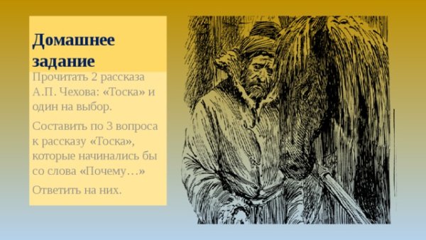 Если речь идет о ключевой фразе "тоска Чехов иллюстрации", то можно сформулировать такое описание:
