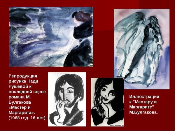 Надя Рушева - талантливый мастер иллюстраций, специализирующаяся на создании волшебных образов и персонажей. Ее работы восхищают своей красотой и оригинальностью, привлекая внимание своими яркими цветами и детальной проработкой. Маргарита Иллюстрации - это произведения искусства, которые запечатлевают моменты из книги Мастера и Маргариты Михаила Булгакова. Великолепно переданная атмосфера и эмоции героев помогают оживить историю и погрузиться в ее магический мир. Благодаря уникальному стилю и таланту Нади Рушевой, иллюстрации к Мастеру и Маргарите становятся настоящими произведениями искусства, порождающими восторг и восхищение у зрителей.