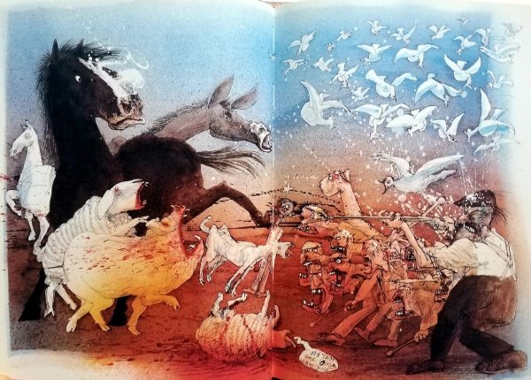 Иллюстрации к знаменитому роману Джорджа Оруэлла "Скотный двор" воссоздают атмосферу жестокого и контролируемого общества, где правят свиньи. Каждая иллюстрация передает настораживающую ауру и подчеркивает темные темы произведения - потерю личной свободы, манипуляцию и диктатуру. Через изображение животных, как символов различных социальных классов, иллюстраторы передают сложность взаимоотношений, которые возникают в таких условиях. Благодаря великолепному стилю и художественным решениям, иллюстрации привлекают внимание читателей и помогают им вникнуть в глубину сюжета и осознать его актуальность и значимость в современном мире.