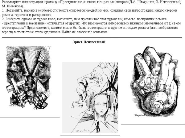 Эрнст – таинственный и загадочный художник, чьи иллюстрации к классическому произведению "Преступление и наказание" вызывают особый интерес и восхищение. Его работы проникнуты глубоким пониманием сюжета и атмосферы романа Федора Достоевского. В каждой иллюстрации он умело передает бурные эмоции героев, их внутренний конфликт и моральное состояние. Каждая деталь, каждая линия, каждый цвет в его работах имеют свой смысл и несут в себе огромную символическую нагрузку. Эрнст создает живые иллюстрации, которые заставляют зрителя проникнуться сюжетом и пережить эмоции героев на себе. Его иллюстрации к "Преступлению и наказанию" являются настоящим произведением искусства, которое великолепно дополняет и расширяет представление о классическом произведении и погружает в мир глубоких мыслей и человеческих страданий.