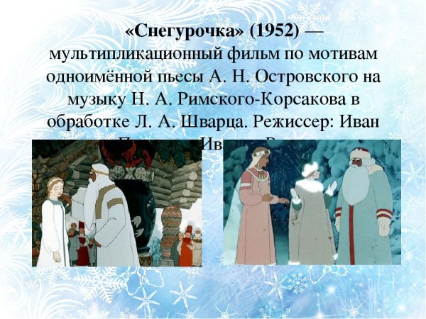 Иллюстрации к пьесе "Снегурочка" Островского - это визуальное воплощение уникальной истории о любви, предательстве и искуплении. Каждая иллюстрация передает атмосферу и настроение произведения, раскрывая его глубокий смысл и эмоциональную напряженность. Художественный почерк и особый стиль иллюстратора помогают перенестись зрителю в мир сказочной Руси, где события развиваются вокруг главной героини - Снегурочки. Благодаря ярким краскам, выразительным лицам и детализированным декорациям, иллюстрации придают жизнь и дополняют сцены пьесы, позволяя зрителю окунуться в ее уникальную атмосферу. Они являются неотъемлемой частью пьесы "Снегурочка" и помогают углубить понимание и восприятие этого классического произведения.
