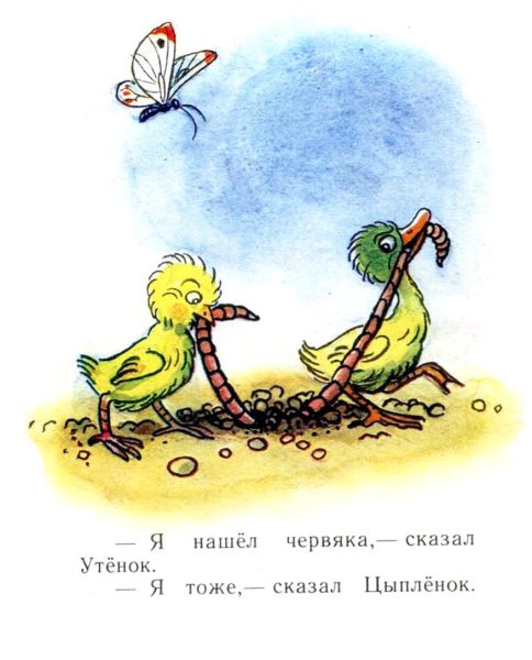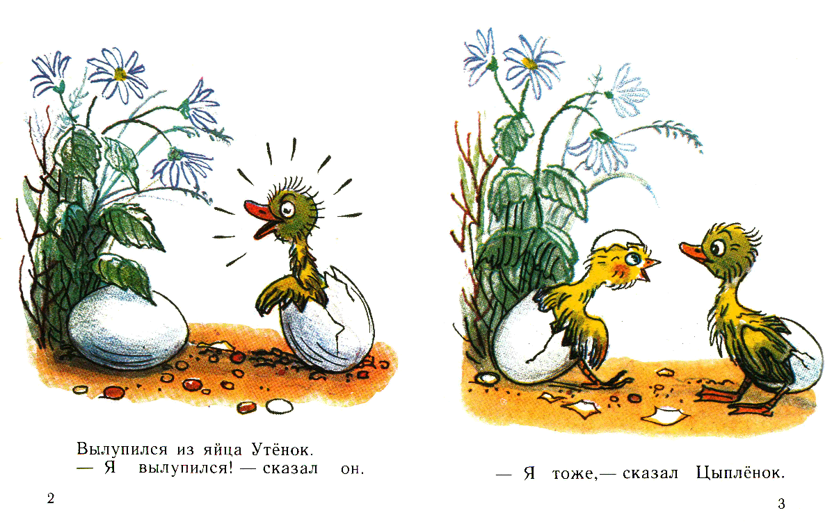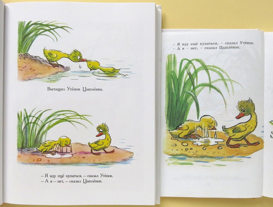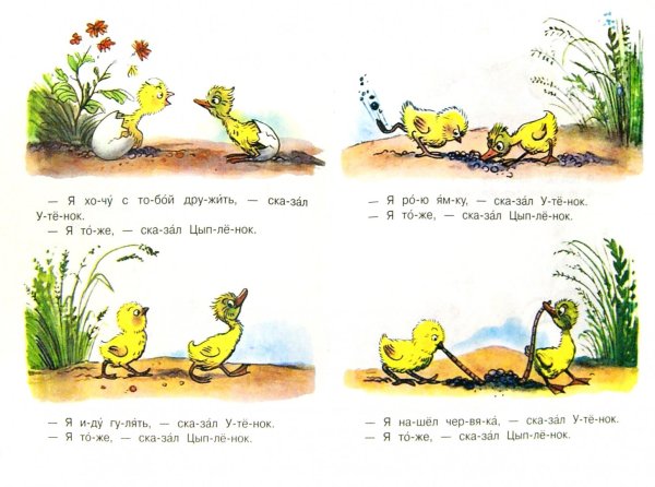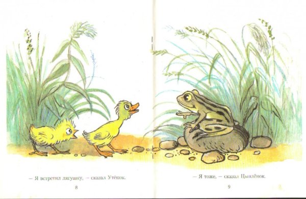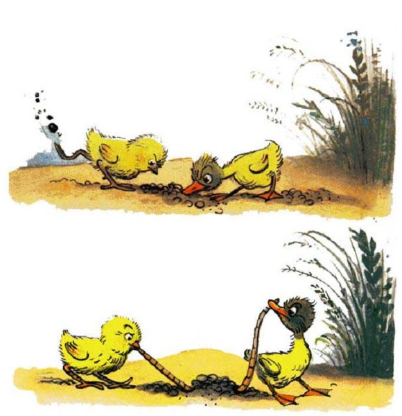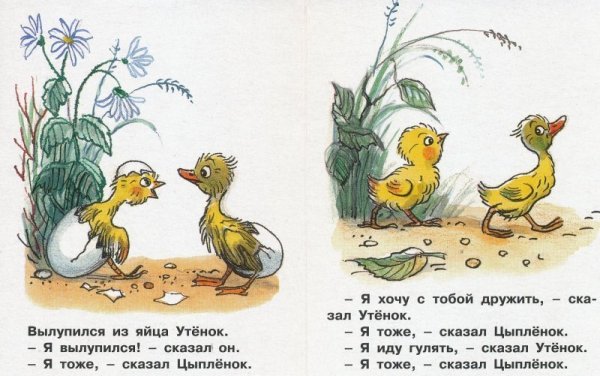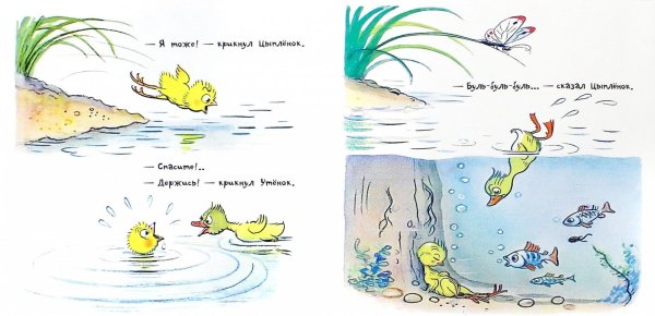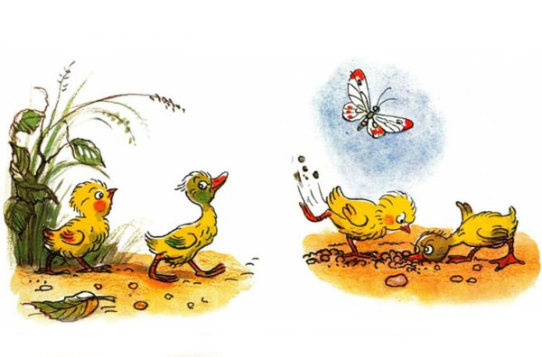 Замечательные иллюстрации Сутеева оживляют на страницах книгу про забавных маленьких животных - цыпленка и утенка. Они позируют с таким юмором и непосредственностью, что даже взрослые не могут удержаться от улыбки. Яркие и ясные цвета, простые и четкие линии рисунка придают этим персонажам особый шарм и индивидуальность. Взглянув на эти иллюстрации, можно проникнуться теплотой и радостью, которую нам подарили эти маленькие создания. Сутеев умело передает их характеры и настроение, создавая незабываемые образы, которые западают в сердце каждого читателя.
