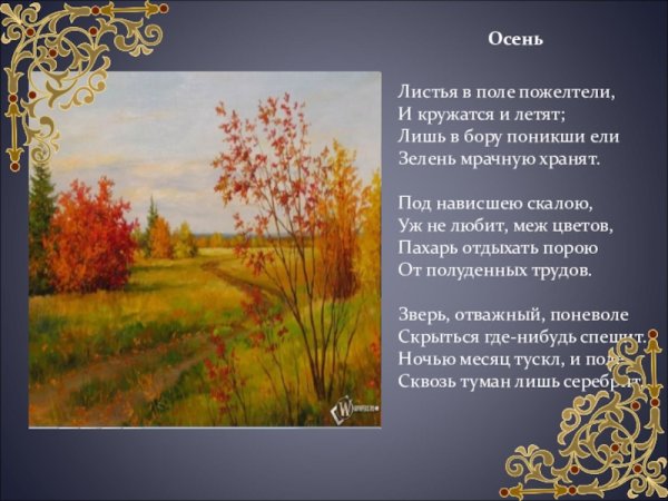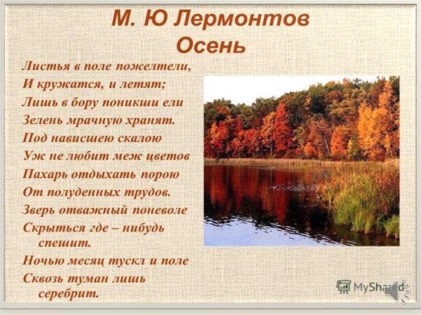Искусство Михаила Лермонтова олицетворяет осень во всей ее красоте и меланхолии. В его произведениях отражена глубокая эмоциональность этого времени года, проникнутая тоской и романтикой. Иллюстрации, созданные на основе его произведений, позволяют взглянуть на осень через призму художественного восприятия. Они передают цветовую гамму осеннего леса, с насыщенными оттенками желтизны, оранжевости и красноты листвы. Картины Лермонтова также улавливают особую атмосферу осени - дыхание прохладного ветра, шелест опавших листьев и тихий шепот далеких голосов. Сочетание мельчайших деталей и ярких красок делает иллюстрации Лермонтова настоящими произведениями искусства, которые способны перенести зрителя в магический мир осенней природы и вызвать в нем глубокие чувства и эмоции.