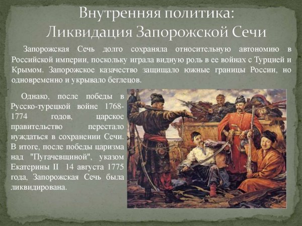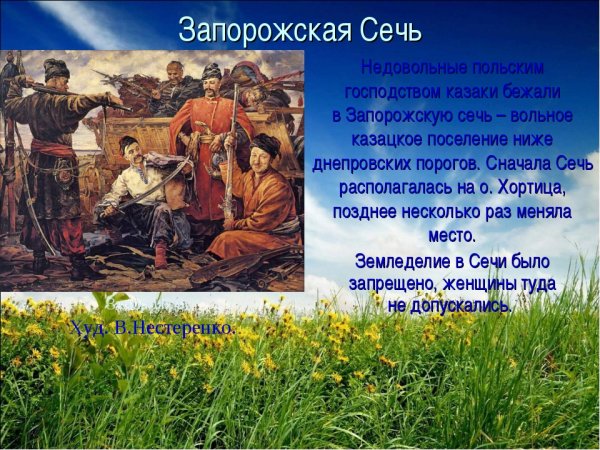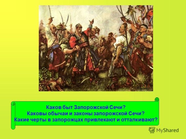 Запорожская сечь - это историческое событие, которое произошло в XVI - XVII веках на территории Украины. Оно олицетворяет сопротивление казаков османскому владычеству и является символом национального героизма и борьбы за независимость. Иллюстрация Запорожской сечи помогает визуализировать этот эпизод из истории, передавая атмосферу боевого духа, силу и единство казачества. Она позволяет окунуться в ту эпоху, когда запорожские казаки сражались за свободу и независимость своей земли. Иллюстрация может быть использована в качестве декоративного элемента в интерьере или как иллюстративное средство для образовательных материалов, книг или публикаций, чтобы помочь читателям лучше понять исторический контекст и значение Запорожской сечи.