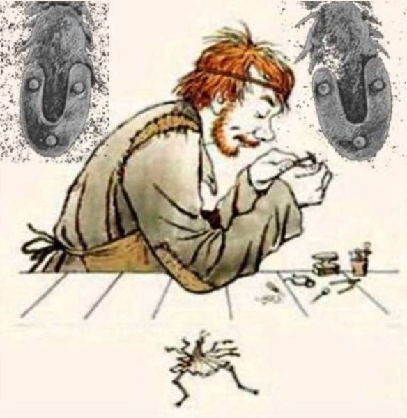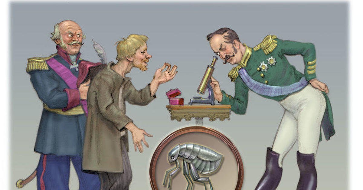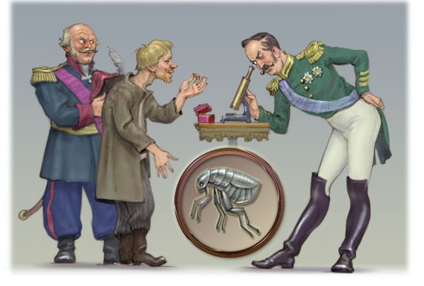 Иллюстрация "Левша и блоха" - это красочное изображение, которое передает веселье и игривость сцены между левшой и блохой. На иллюстрации видно, как левша, с улыбкой на лице, выпрямляет свою руку, чтобы позволить блохе перепрыгнуть на нее. Блоха, в свою очередь, с жизнерадостным выражением лица, готовится прыгнуть вперед. Весь момент запечатлен с яркими цветами и детально проработанными деталями, что делает иллюстрацию привлекательной и захватывающей взгляд зрителя. Она может использоваться для декорирования стен в детской комнате, книжных обложек или быть частью коллекции искусства. Иллюстрация "Левша и блоха" - отличный способ добавить радость и веселье в окружающую обстановку.