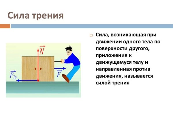 Графическая иллюстрация силы трения - это визуальное изображение, которое помогает визуально представить и объяснить концепцию силы трения. В такой иллюстрации обычно показывается объект, движущийся по поверхности, и стрелки, указывающие на направление силы трения. Часто используются различные цвета или штриховка, чтобы выделить зоны повышенного или усиленного трения. Такая графическая иллюстрация может быть полезна для студентов, которые изучают физику или механику, а также для простого объяснения и визуализации понятия силы трения.