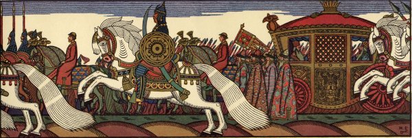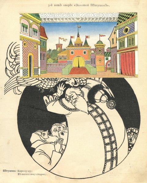 Иллюстрация к опере "Золотой петушок" представляет собой визуальное произведение искусства, которое передает атмосферу и сюжет оперы. На иллюстрации могут быть изображены главные герои оперы: царь Додон, его сыновья Гвидон и Афоня, княгиня Шемаханская, Золотой петушок и другие персонажи. Используя различные художественные приемы, иллюстратор может передать эмоции и настроение происходящего в опере. Такая иллюстрация может служить не только декоративным элементом, но и помогать зрителю или читателю более полно погрузиться в мир оперы и ее сюжет.