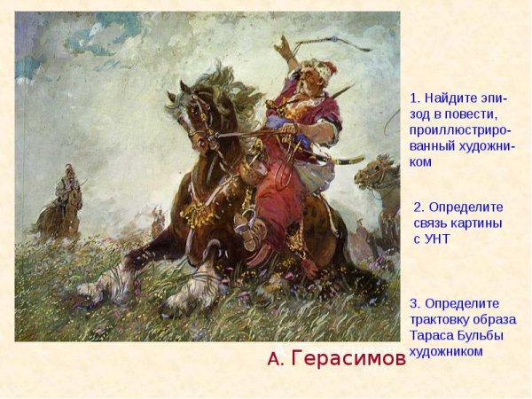 Герасимов Тарас Бульба — талантливый и известный художник-иллюстратор, чьи работы олицетворяют красоту и мастерство. Его иллюстрации к знаменитому произведению Николая Гоголя "Тарас Бульба" воссоздают атмосферу драмы и страсти, присущей этой классической литературной работе. С помощью своего уникального стиля и мастерского использования цветовых гамм, Герасимов создает неповторимую картину, которая захватывает взгляд и позволяет воплотиться в мире героев и событий романа. Каждая его иллюстрация ярко передает эмоции и настроение персонажей, а также величие украинской культуры и истории. Художественные работы Герасимова являются настоящим произведением искусства, которые не оставят равнодушными всех любителей литературы и изобразительного искусства.