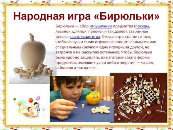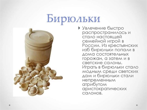 Игра в бирюльки - это увлекательное и классическое развлечение, которое привлекает своей простотой и весельем. Бирюльки - это небольшие шарики, которые нужно закатывать по специальной дорожке с помощью крупы или другого игрового инструмента. Цель игры заключается в том, чтобы набрать максимальное количество очков, закатывая бирюльки в определенные отверстия или достигая определенных целей на игровом поле. Игра в бирюльки может быть забавным способом провести время со своими друзьями или семьей, а также развить ловкость и координацию движений. Погрузитесь в мир игры в бирюльки и наслаждайтесь моментами радости и успеха!