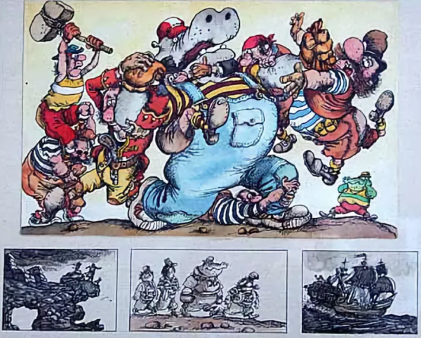 Погрузитесь в увлекательный мир приключений вместе с капитаном Врунгелем и его верными спутниками! Эти яркие иллюстрации от талантливого художника Сахалтуева оживляют страницы известной детской книги, позволяя каждому читателю в полной мере насладиться волшебством и фантазией этой замечательной истории. Через гениальное перо художника перед нами оживает живописный мир тропического острова, пиратских кораблей и необычных существ. Каждая деталь иллюстрации тщательно проработана, чтобы подарить читателям незабываемые впечатления и заслуженные восторги. Приключения капитана Врунгеля станут еще более захватывающими благодаря выразительности и красочности иллюстраций Сахалтуева.