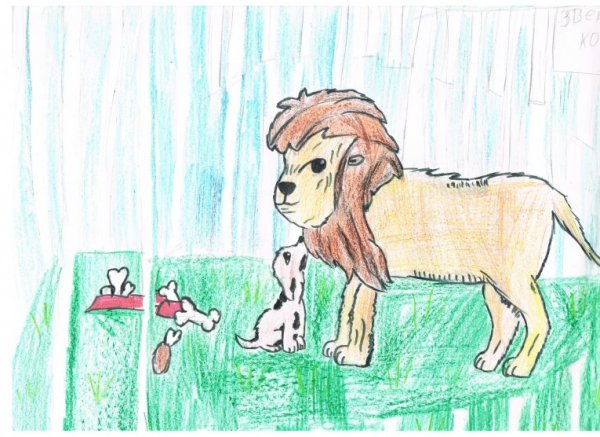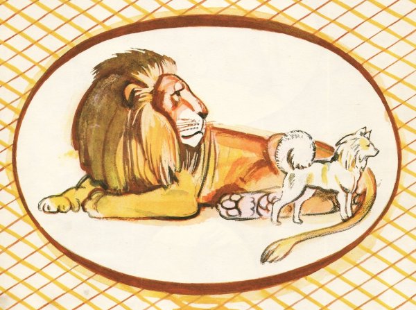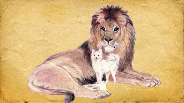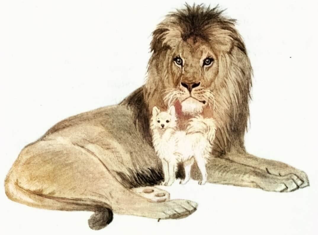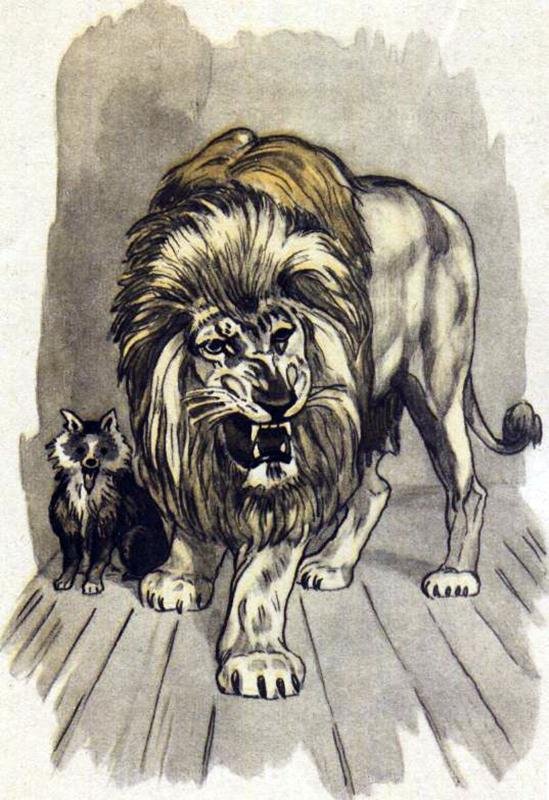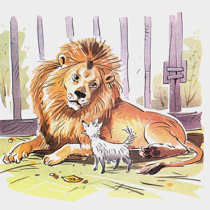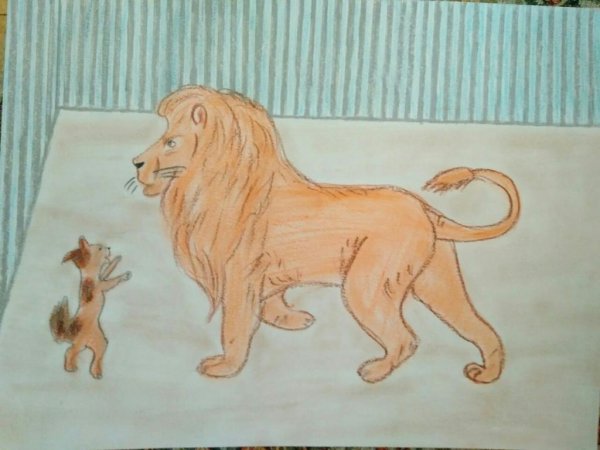 На этой красочной иллюстрации представлены два самых лучших друга - могучий лев и преданный пес. Лев, с его величественной осанкой и гривой, выглядит как настоящий царь животного мира, а собачка, с яркими глазками и улыбкой на морде, полна энергии и радости. Они стоят рядом друг с другом, символизируя дружбу и солидарность между разными видами. Эта иллюстрация наводит на мысли о том, что даже сильные и могущественные создания нуждаются в верных и преданных спутниках, которые поддерживают их в любых ситуациях. Взглянув на это произведение искусства, невозможно не почувствовать тепло и радость от такой прекрасной дружбы.