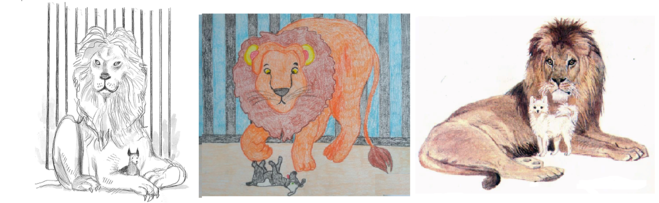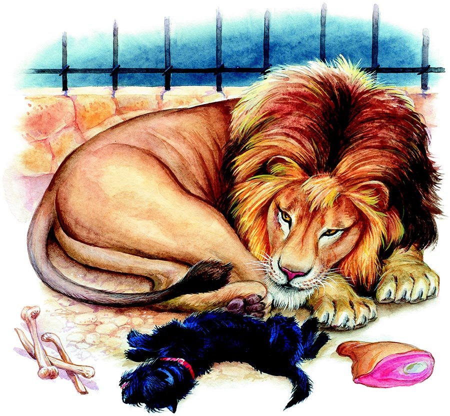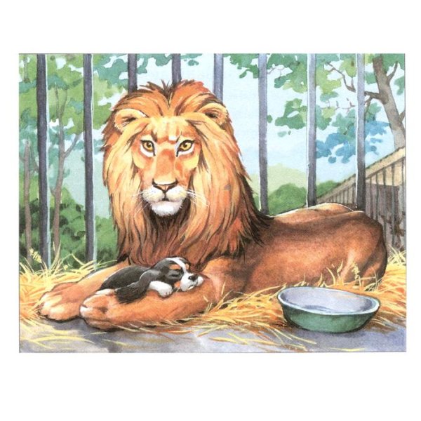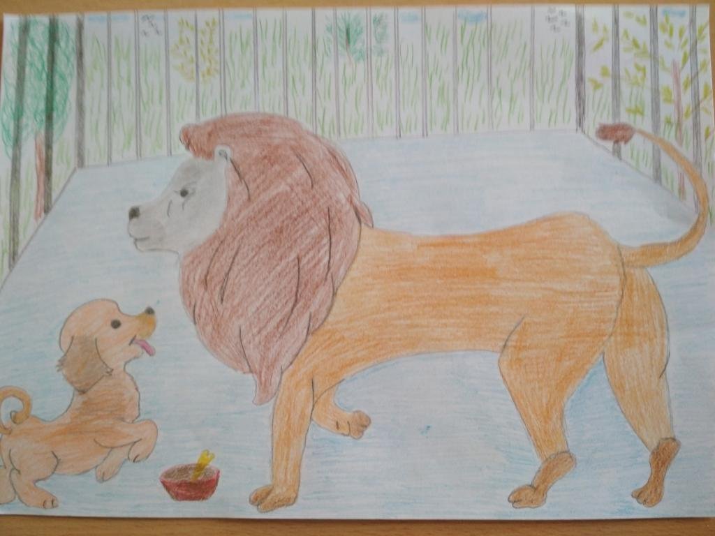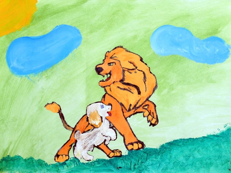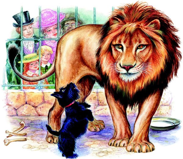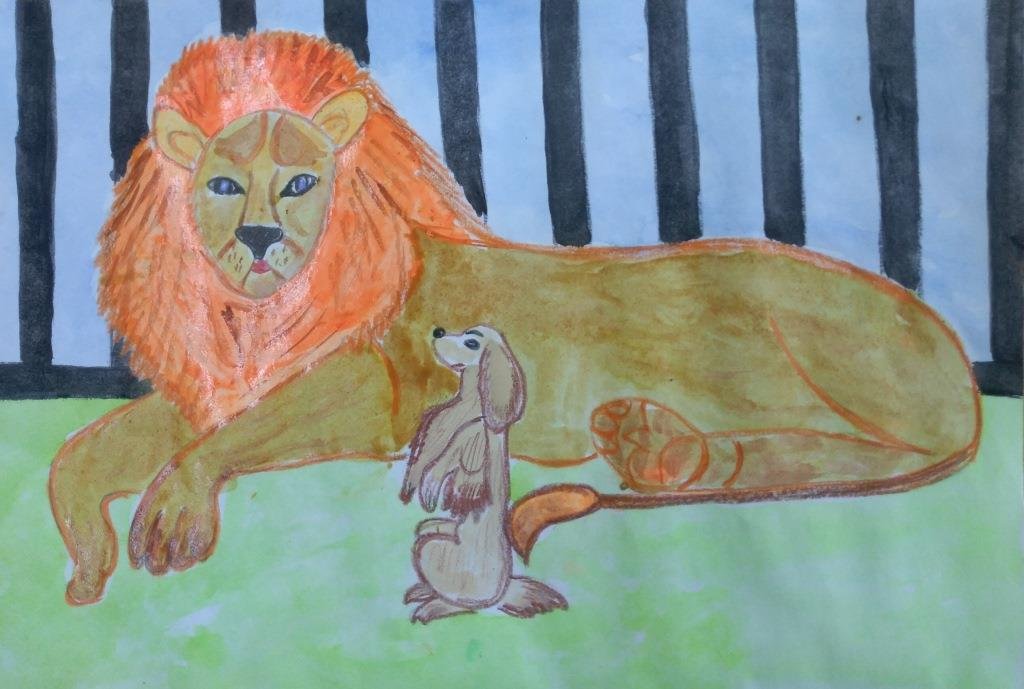 На этой красочной иллюстрации представлены два самых лучших друга - могучий лев и преданный пес. Лев, с его величественной осанкой и гривой, выглядит как настоящий царь животного мира, а собачка, с яркими глазками и улыбкой на морде, полна энергии и радости. Они стоят рядом друг с другом, символизируя дружбу и солидарность между разными видами. Эта иллюстрация наводит на мысли о том, что даже сильные и могущественные создания нуждаются в верных и преданных спутниках, которые поддерживают их в любых ситуациях. Взглянув на это произведение искусства, невозможно не почувствовать тепло и радость от такой прекрасной дружбы.