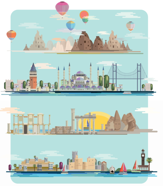 Иллюстрация Турции воплощает всю красоту и многогранность этой удивительной страны. Начиная с изумительных пейзажей, таких как величественные горы Каппадокии, бескрайние пляжи Средиземного моря и Эгейского моря, заканчивая живописными городами, такими как Стамбул с его сказочными мечетями и дворцами. Иллюстрация Турции передает атмосферу духовности и истории, которые окутывают эту землю, отслеживая ее богатое наследие в каждом элементе. Бесконечные базары, ароматы восточных специй, традиционные танцы и праздники – все это можно найти в иллюстрации Турции. Пусть эта яркая и красочная картинка перенесет вас в мир Турции, который обещает быть незабываемым и захватывающим приключением.