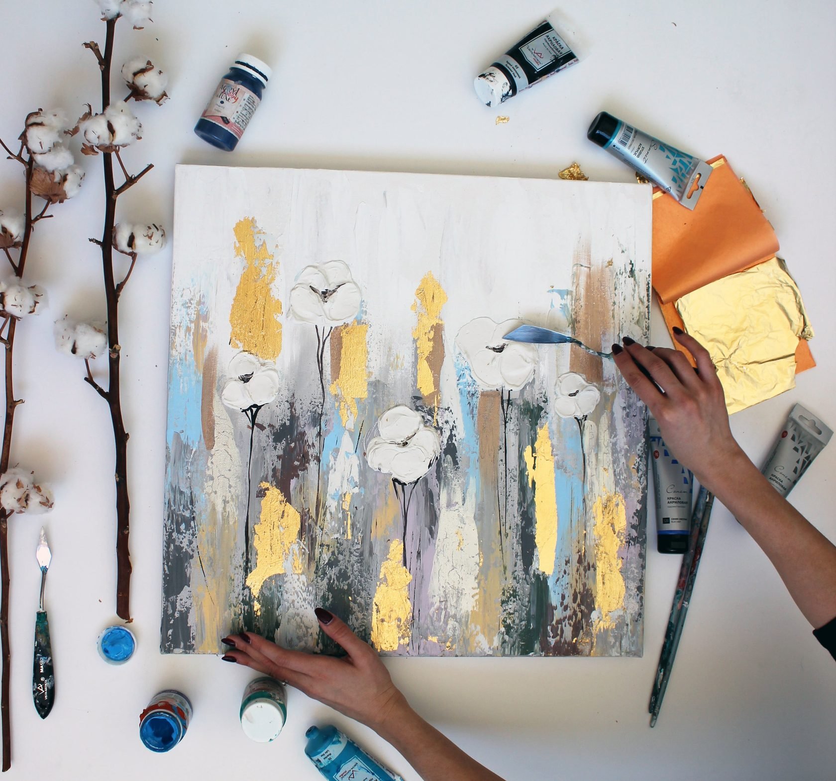 Цветы акрилом на холсте