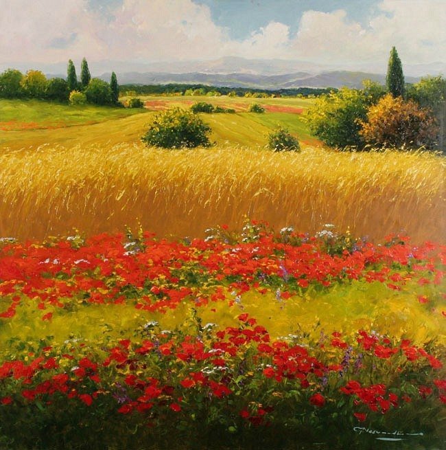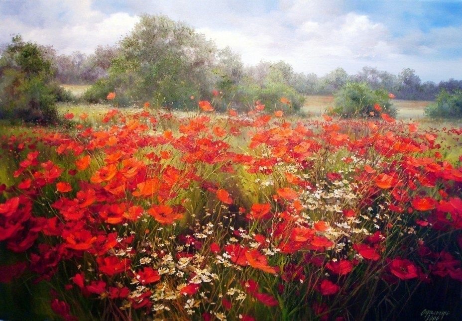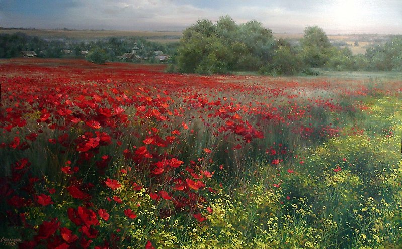 Евгений Синев картины поле маков .