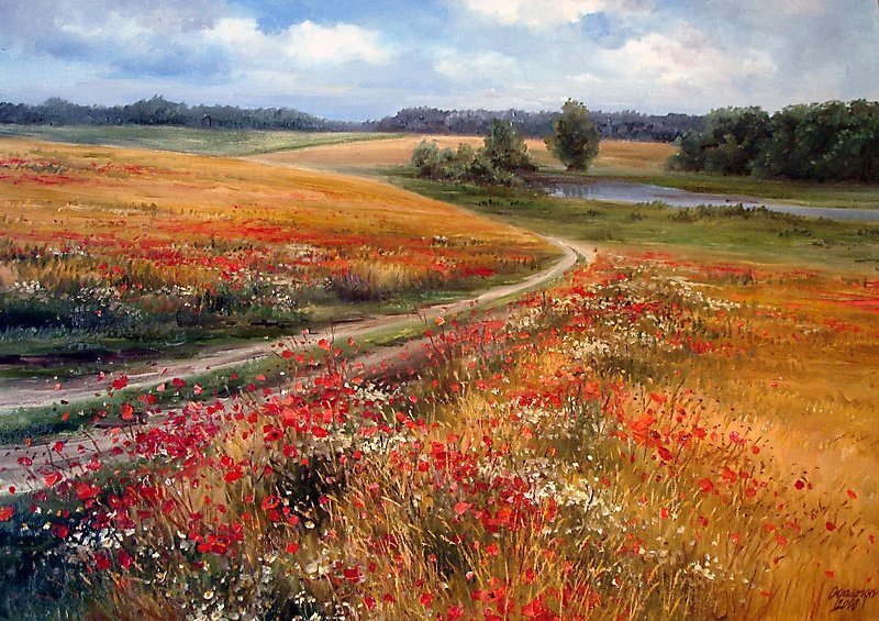 Маковое поле маслом на холсте