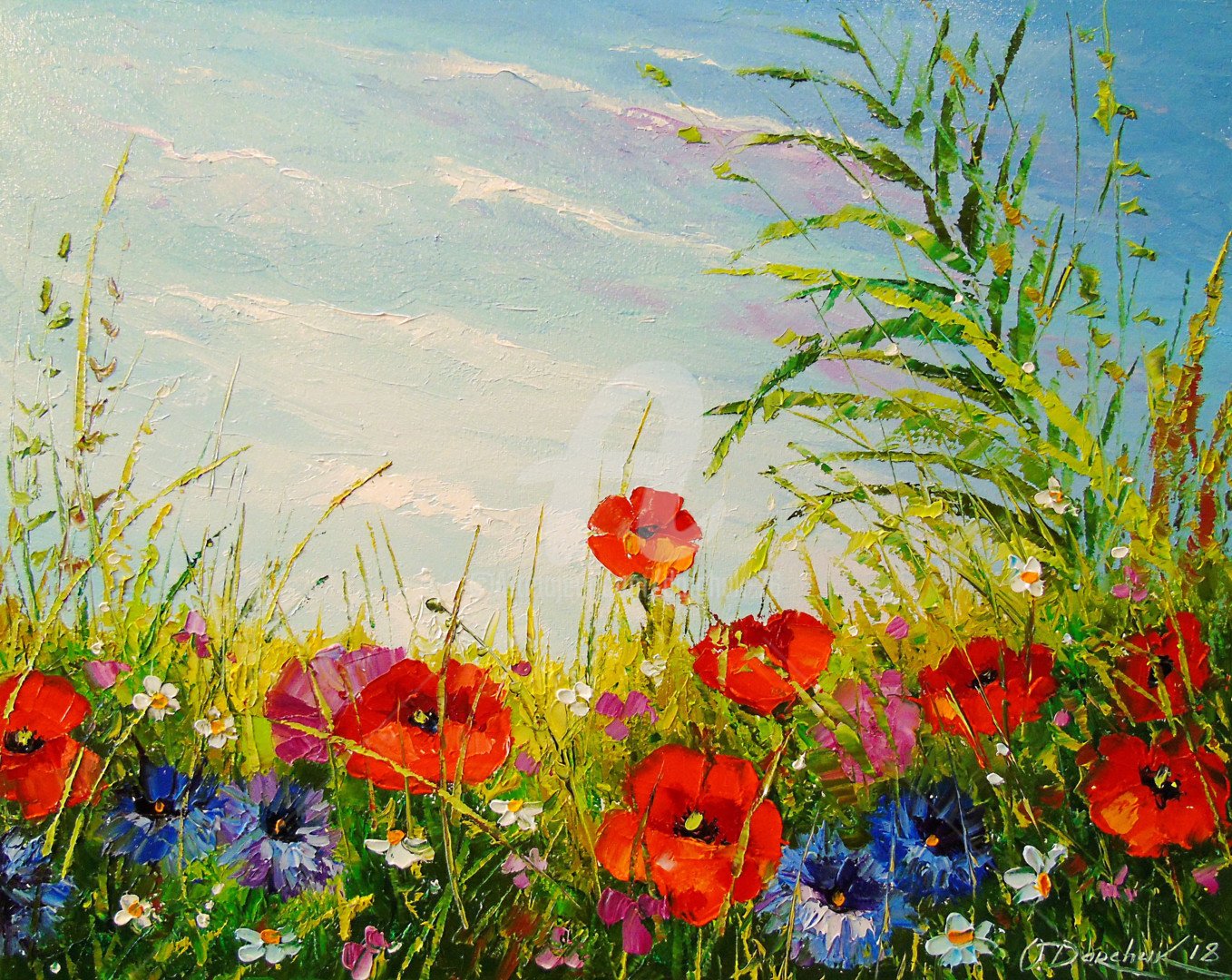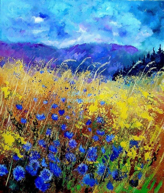 Поле цветов картина маслом