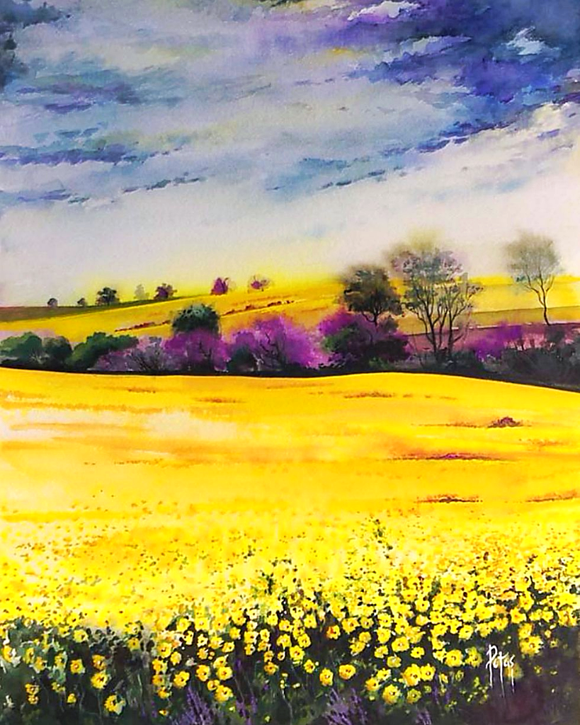 Пейзаж красками поле