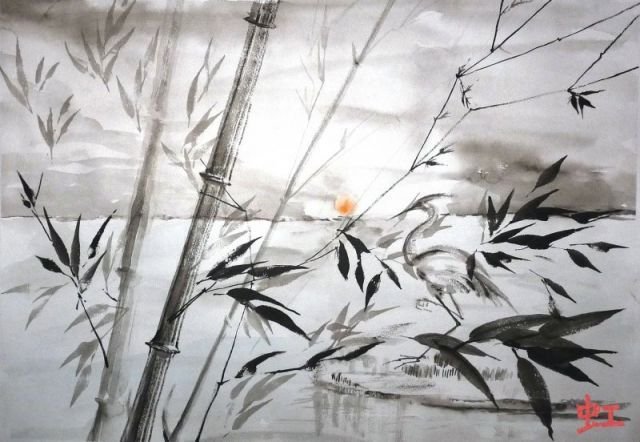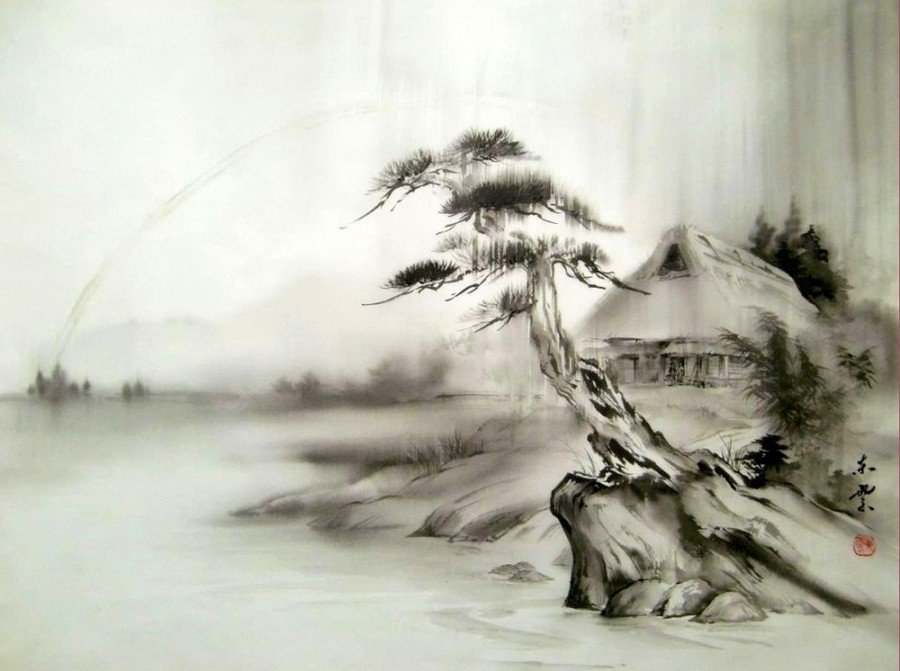 «Японская живопись тушью в стиле суйбокуга» Рюкю Саито