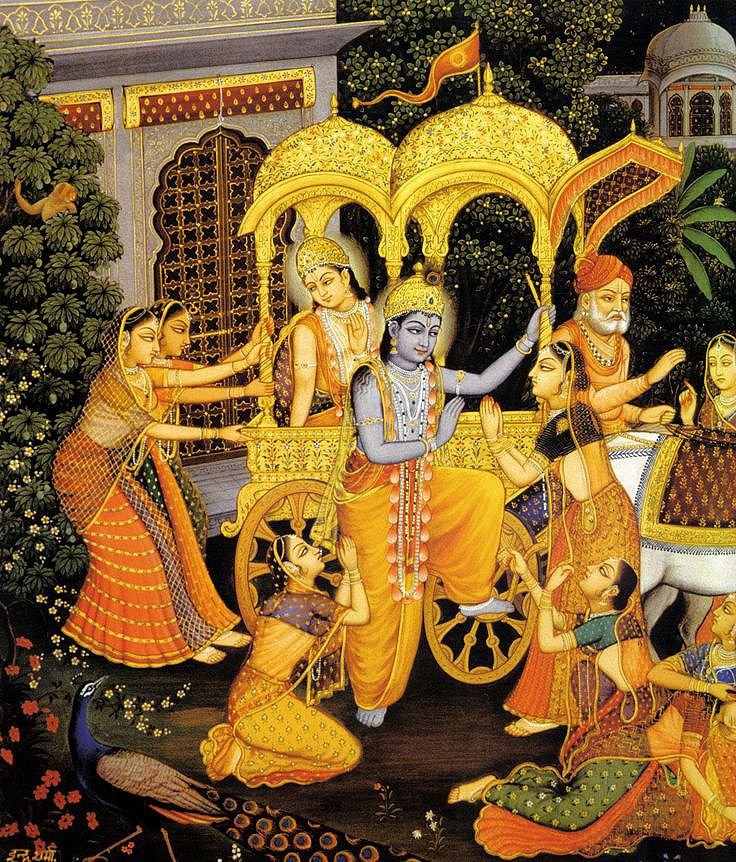 Индийская Могольская миниатюра Кришна