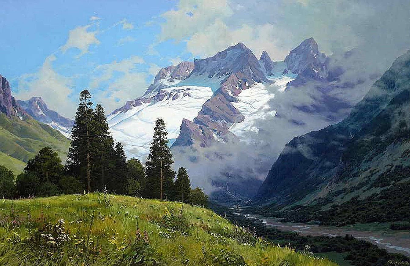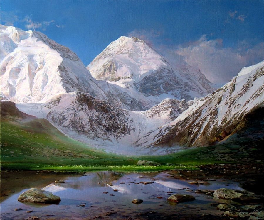 Волшебная и притягательная красота гор вдохновляет на создание живописных шедевров. Горы - это потрясающий объект для художников, которые пытаются передать их величественность и мощь на холсте. Каждая горная вершина, каждый склон и каждая долина имеют свой уникальный облик и характер, который можно зафиксировать на художественной картине. Яркие краски пейзажа в сочетании с контрастом света и тени помогают передать грандиозность гор и их воздушную прозрачность. Живописные горы заставляют нас ощутить мощь природы и восхититься ее безграничными возможностями. Они являются источником вдохновения не только для художников, но и для всех, кто любит и ценит прекрасное вокруг нас.
