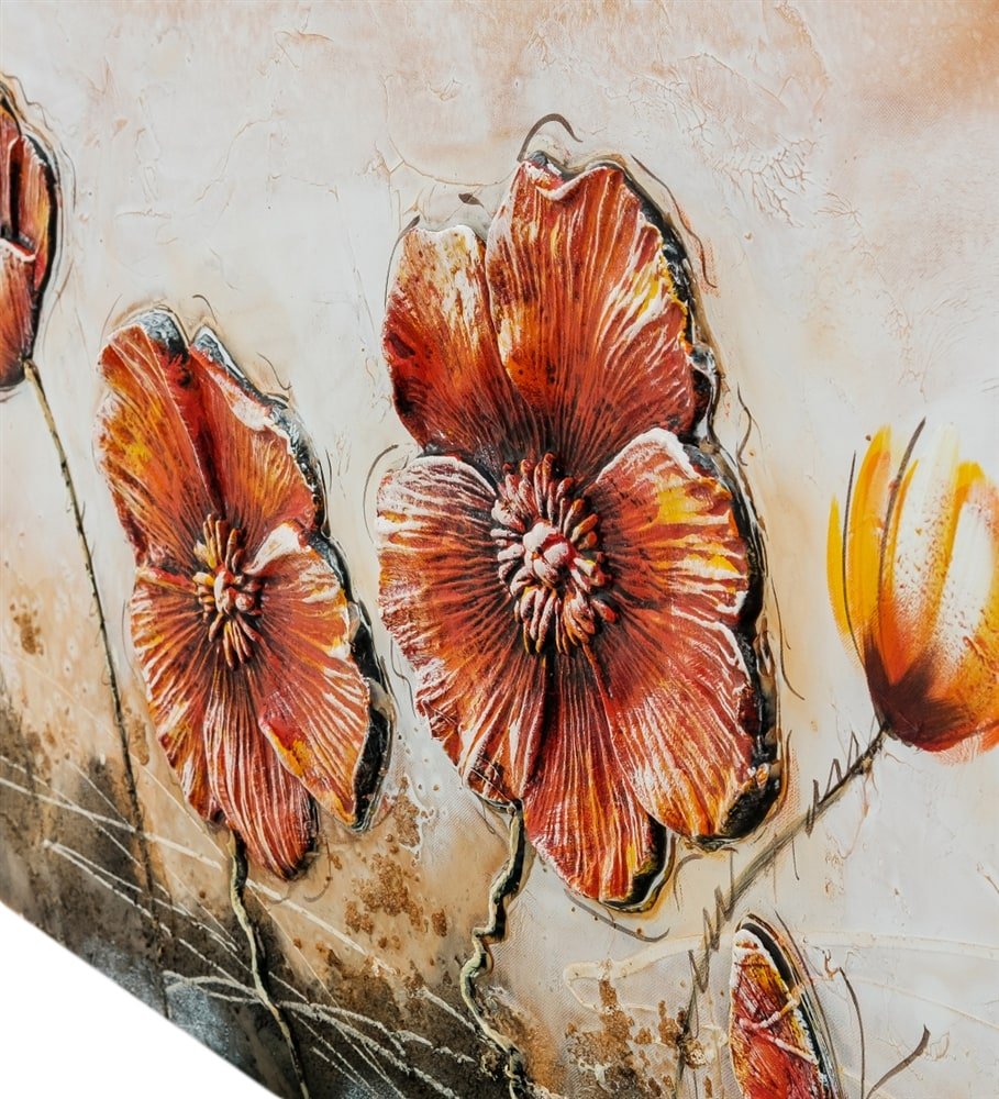 Живопись цветы с поталью в интерьере