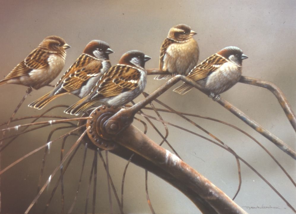 Птички маслом на холсте