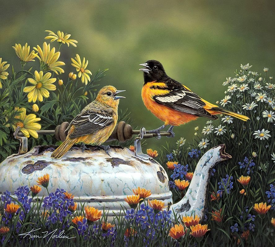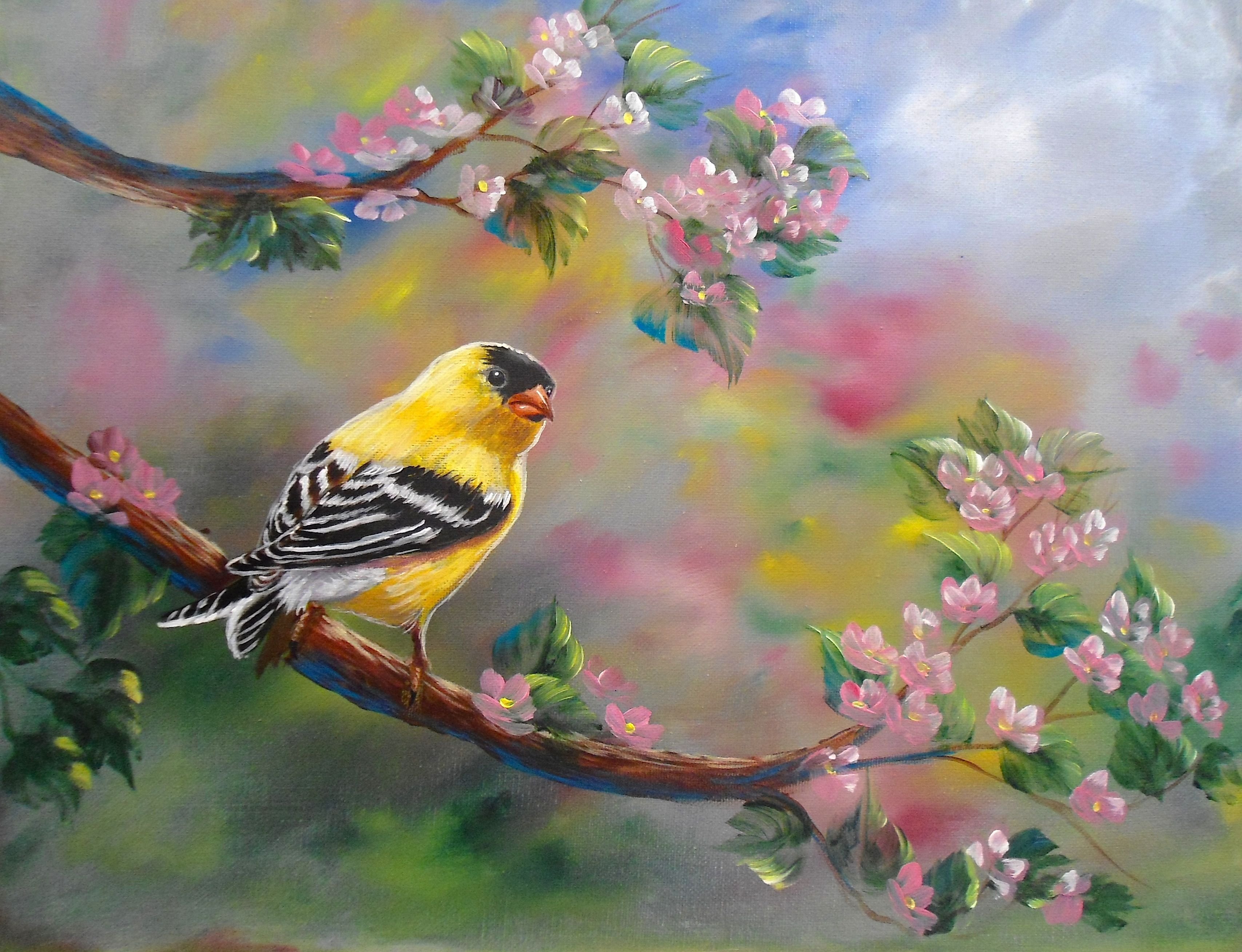 Птицы живопись маслом Весна