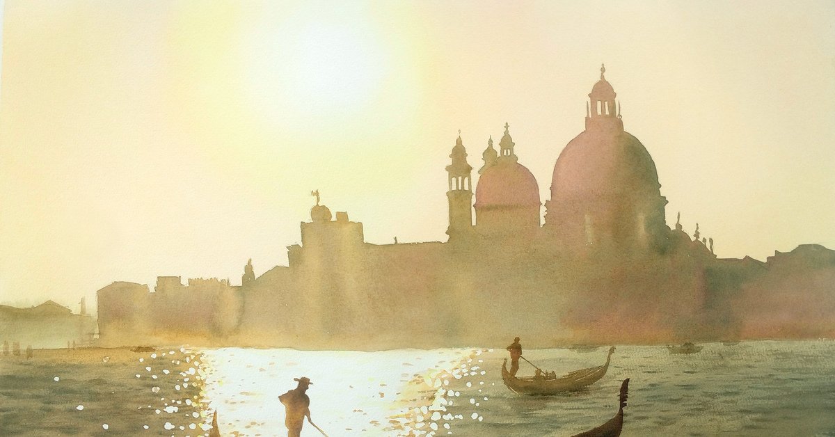 Венеция гондольеры акварель