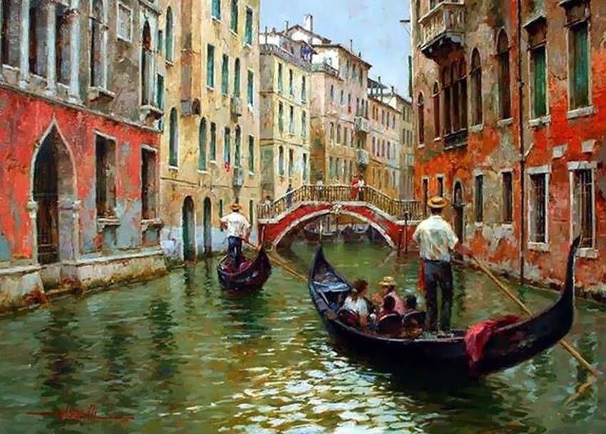 Живопись маслом Венеция канал гондольер