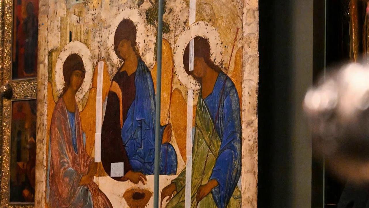 Русский иконописец Андрей рублёв фрески Успенского собора Троица