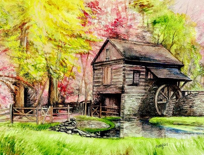 Водяная мельница картина