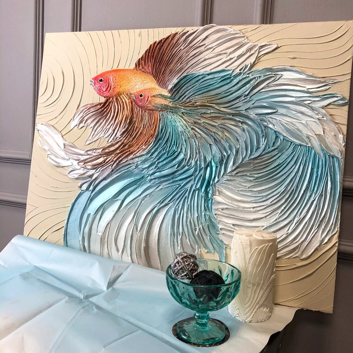 Золотая рыбка текстурной пастой