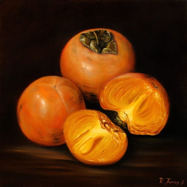 Хурма - это удивительный плод, который не только радует наш вкусовой рецептор, но и вдохновляет художников своей красотой. Живопись с использованием мотивов хурмы может быть по-разному интерпретирована: от ярких и сочных натюрмортов, где каждая деталь плода прорисована сочетанием пастельных и насыщенных тонов, до абстрактных композиций, где контуры хурмы изгибаются и переплетаются, создавая игру света и цвета. Эта тема в живописи позволяет передать не только внешнюю привлекательность хурмы, но и ее символическое значение, так как этот плод часто ассоциируется с изобилием, благополучием и здоровьем. В любом случае, хурма в живописи способна заставить нас остановиться и насладиться ее эстетической привлекательностью.