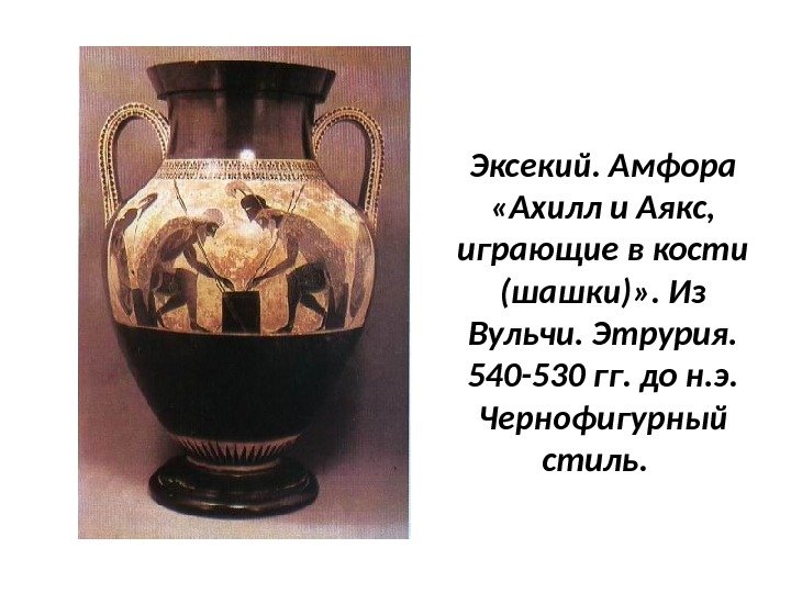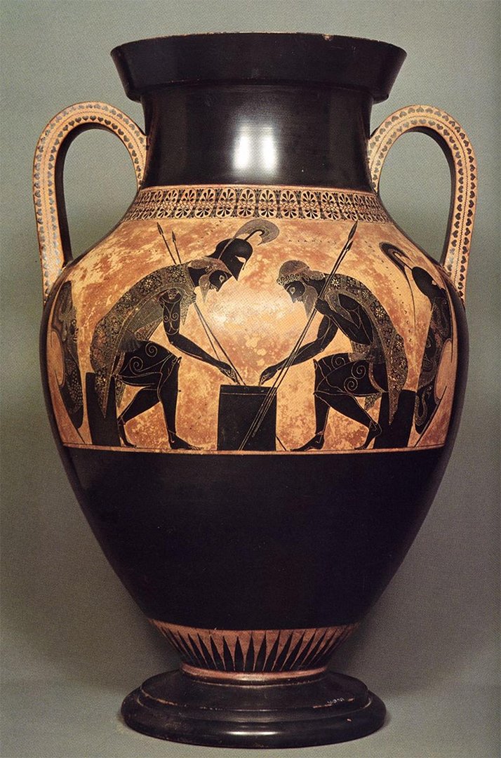 Амфора. Чернофигурный стиль. Ахилл и Аякс, играющие в шашки