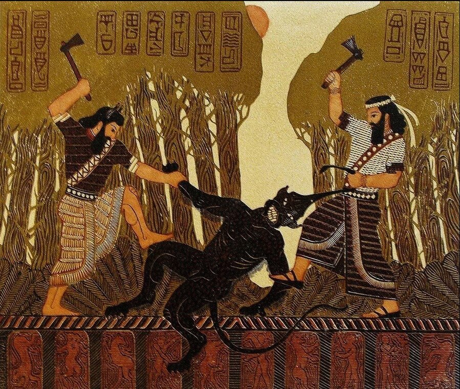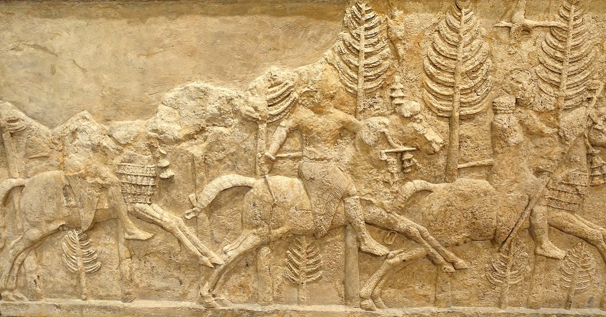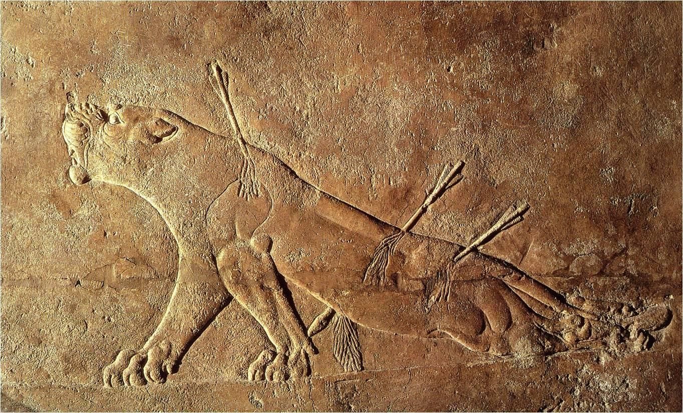 Большая львиная охота рельеф из дворца Ашшурбанипала в Ниневии