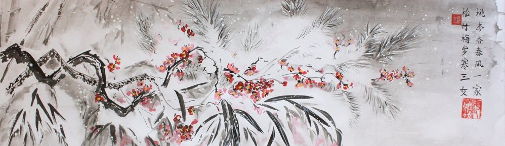 Китайская живопись бамбук и слива,и сосна