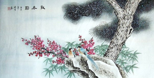 Китайская живопись акварелью зима