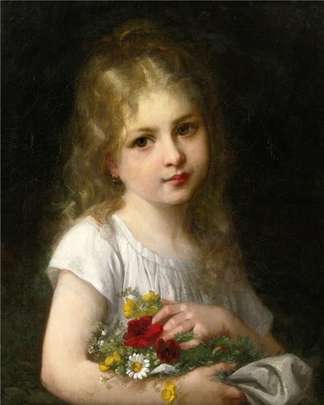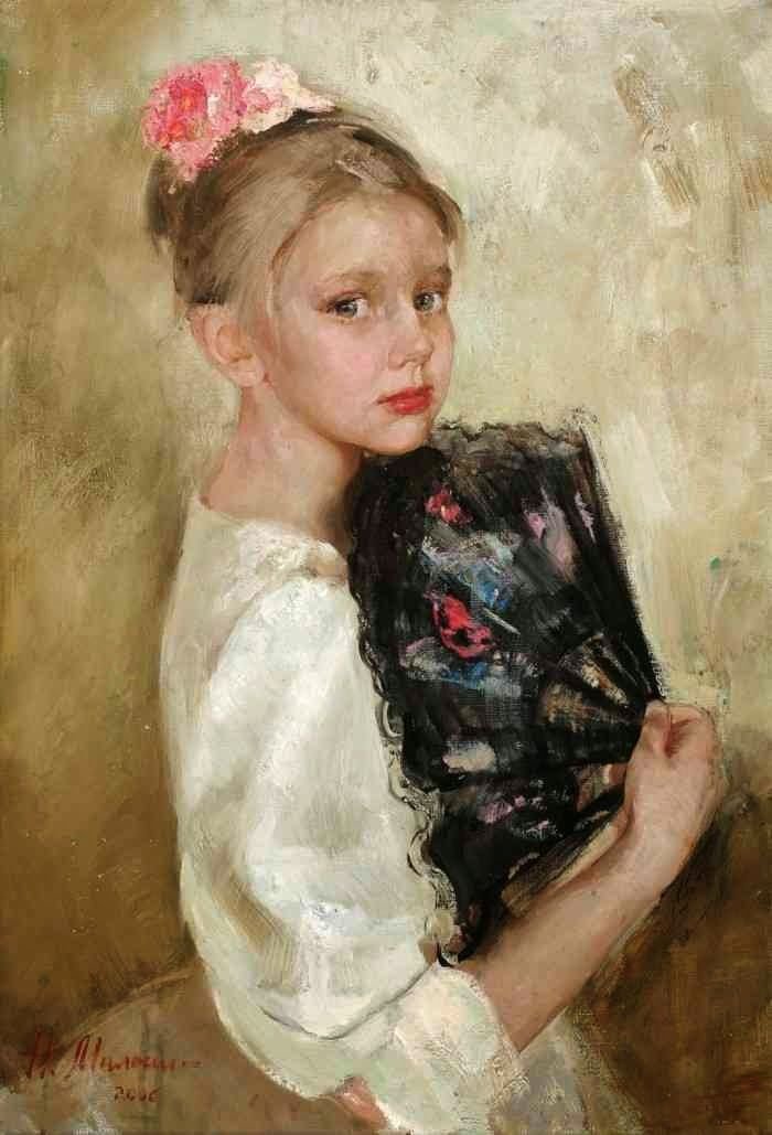 Клавдий Лебедев (1852 — 1916)портрет девочки в павловопосадском платке.